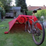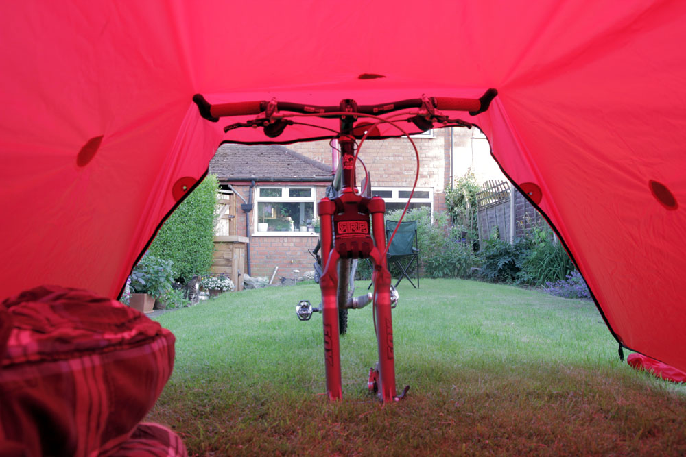 I won’t be using any poles so any set up is going to have to use the bike or the available scenery as supports. I tried out a couple of different set ups last night pictured below.